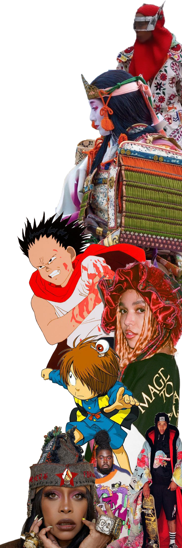 The things that inspire me are all from the multidimensionality of my identity. I am heavily influenced by Anime and Hip Hop culture. I like to think myself as the harmonious combination of Black and Japanese culture, I continuously seek to innovate my heritage into the futurism of Afro.